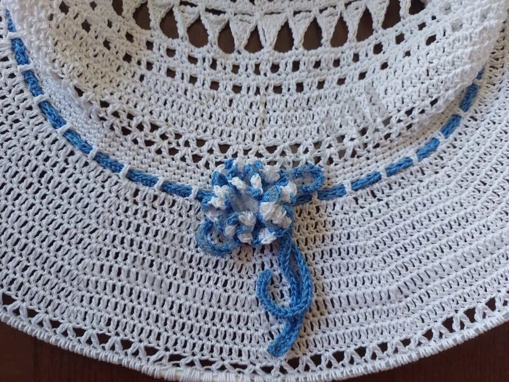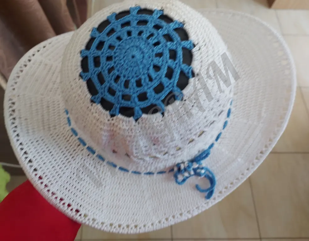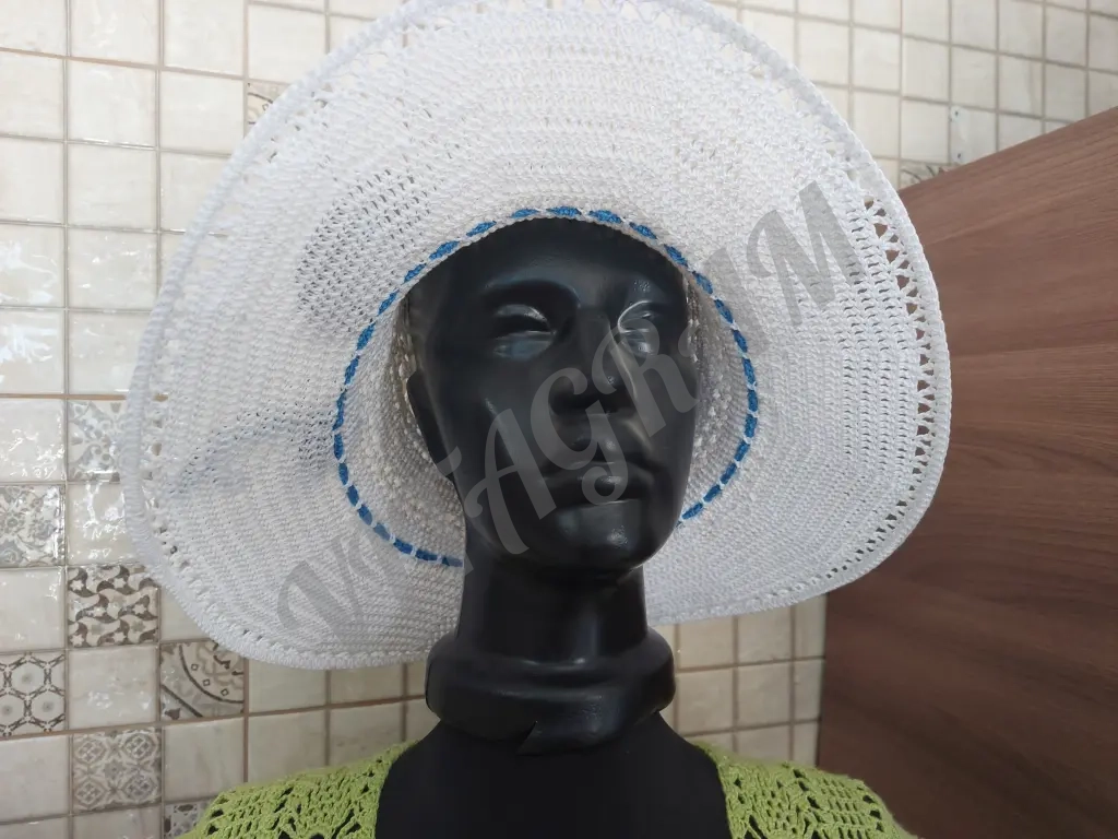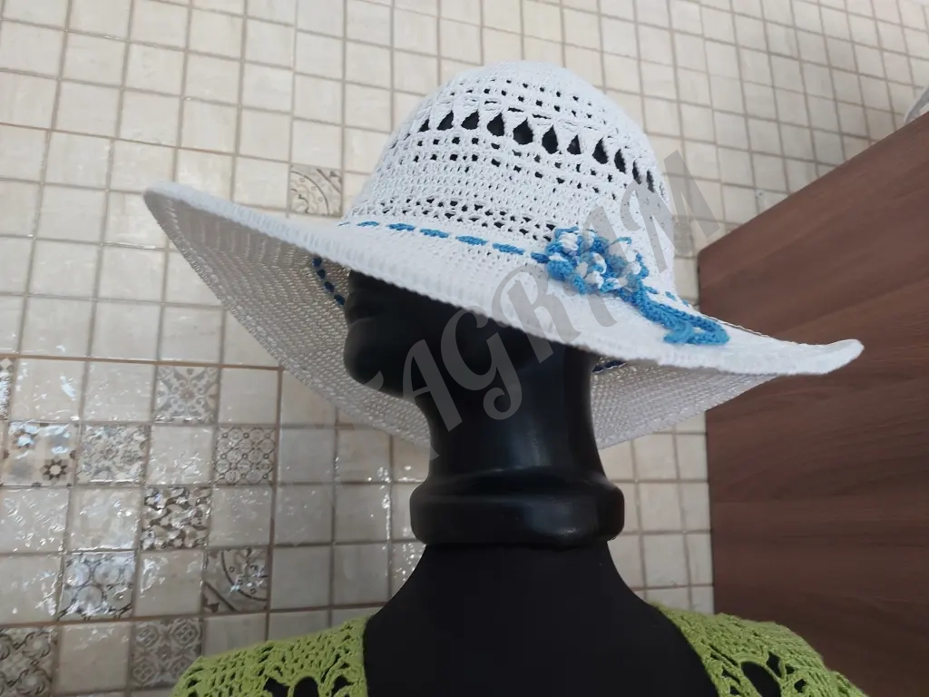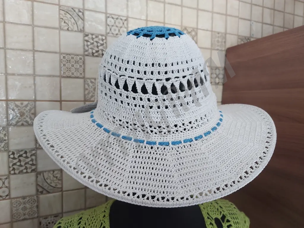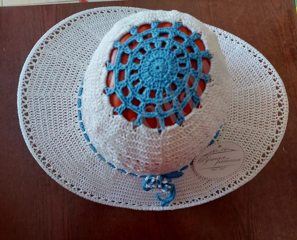 Шляпа женская связана из качественного хлопка по кругу, без швов, с широкими полями. Красивый аксессуар, незаменимый в жаркую погоду. Придаст элегантности Вашему образу.Бренд указан для публикации
