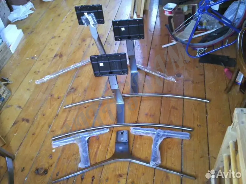 Подставки под телевизоры. Расстояния м-у крепёжными отверстиями 110 мм по вертикали и по горизонтали на чёрных площадках. На белой сверху по горизонтали 100 мм, снизу 200 мм, а по вертикали 50 мм. Плюс подставка под большой SONY, с расстоянием м-у крепёжными винтами 40 см.
