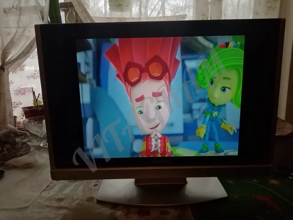 В комплекте сам телевизор, провод питания, подставка, нет пульта, есть вход vga для подключения компьютера.