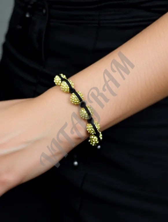 Браслет на руку плетеный с бусинами из шамбала-бусин с кристаллами, стеклянных бусин и вощеного шнура. Длина браслета регулируема