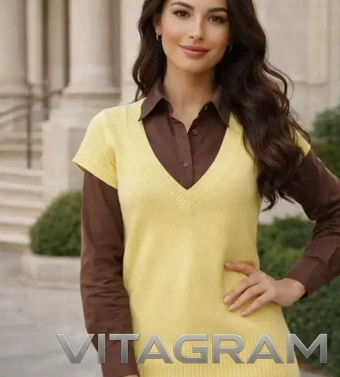 Спокойный нежно -желтый цвет,легко сочетается с любыми юбками,брюками, блузой,рубашкой.