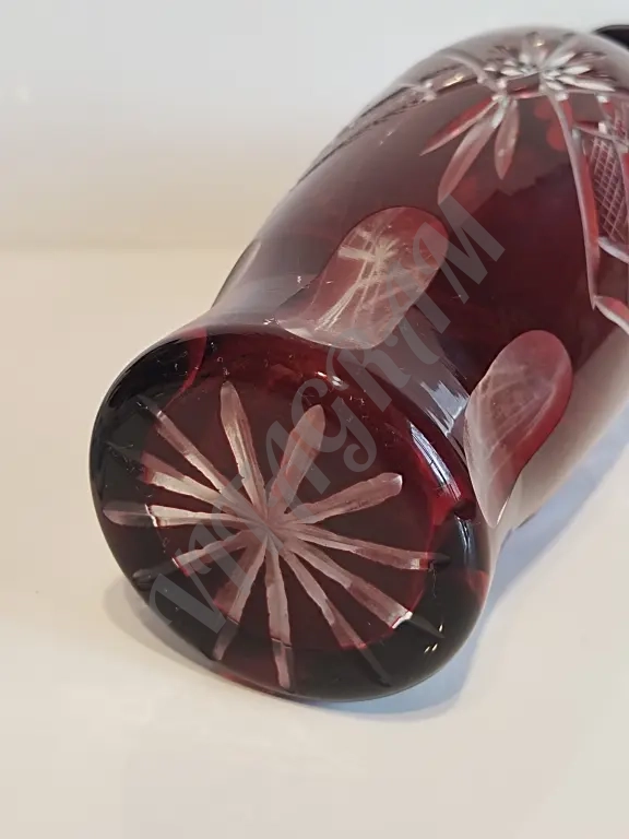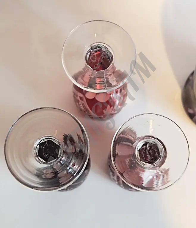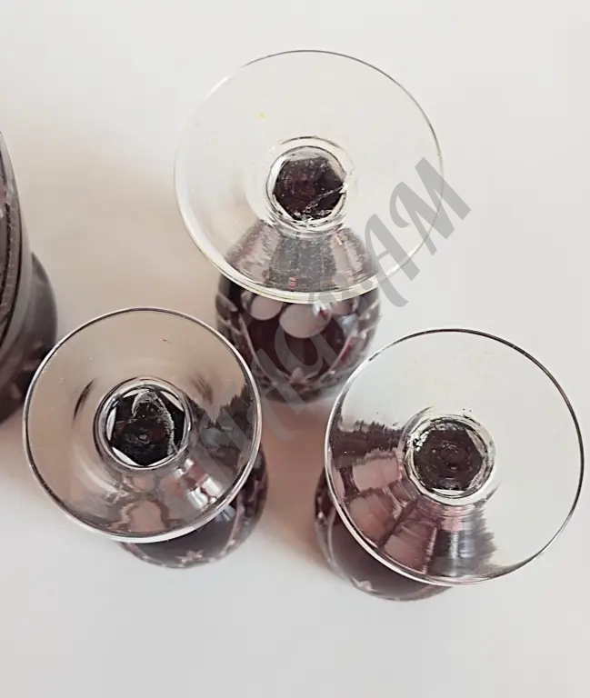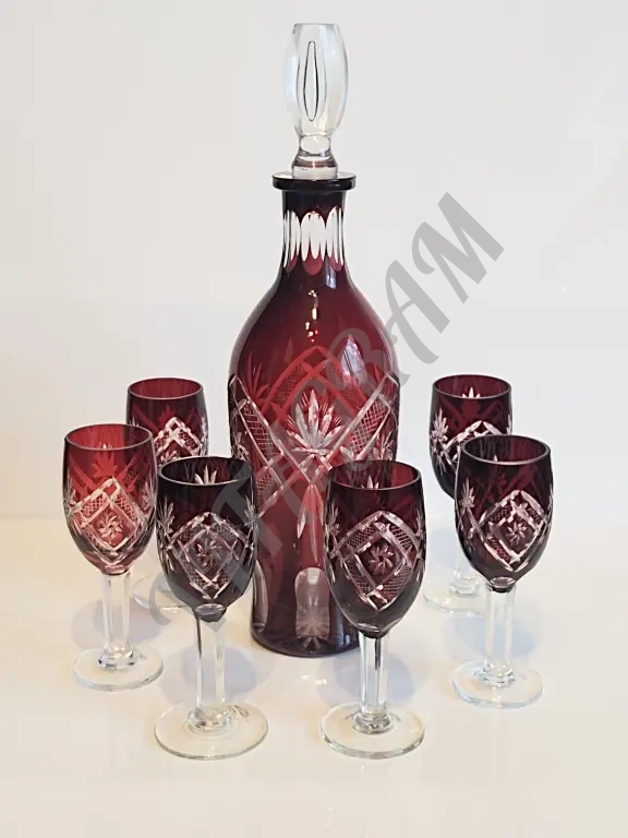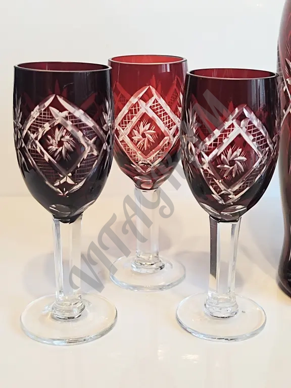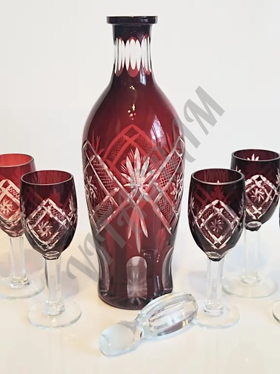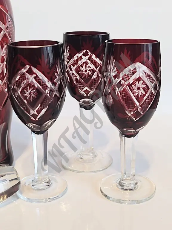 Винтажный комплект. Графин + 6 фужеров. Цветной хрусталь. Алмазная огранка. Германия 1960-е