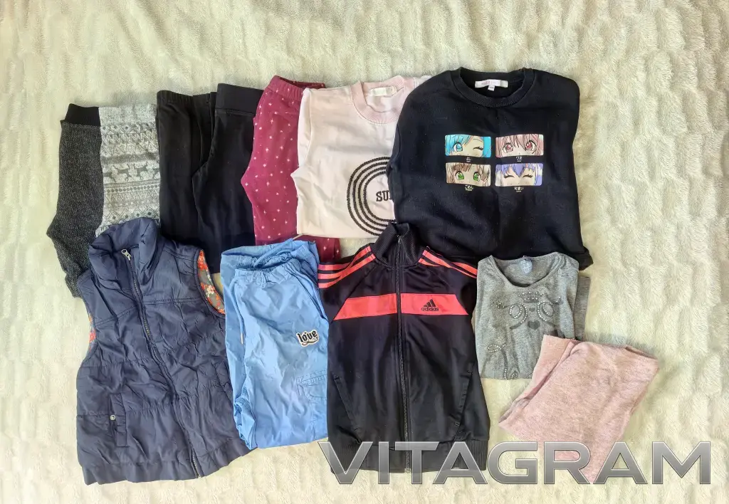 Пакет детской одежды для девочки 122 128 размер состоит из 12 вещей на осень, зиму и весну.