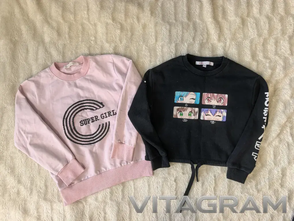 Дополнительно положу две толстовки для дома или прогулок на улице (есть пятнышки от краски, дочь носила в художку).