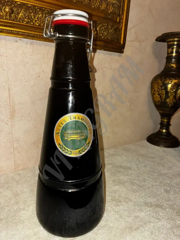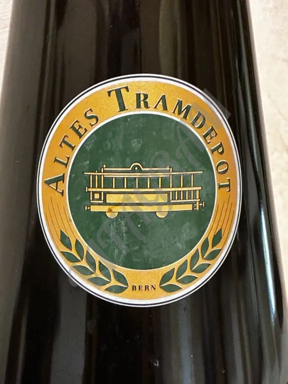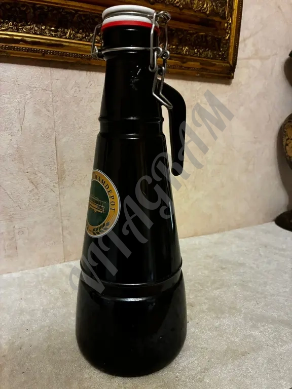 Уникальная пивная бутыль (2 литра) с бугельной фарфоровой крышкой из пивной Трамвайное депо [Берн, Швейцария, рядом с зоопарком, который посещал профессор Плейшнер].